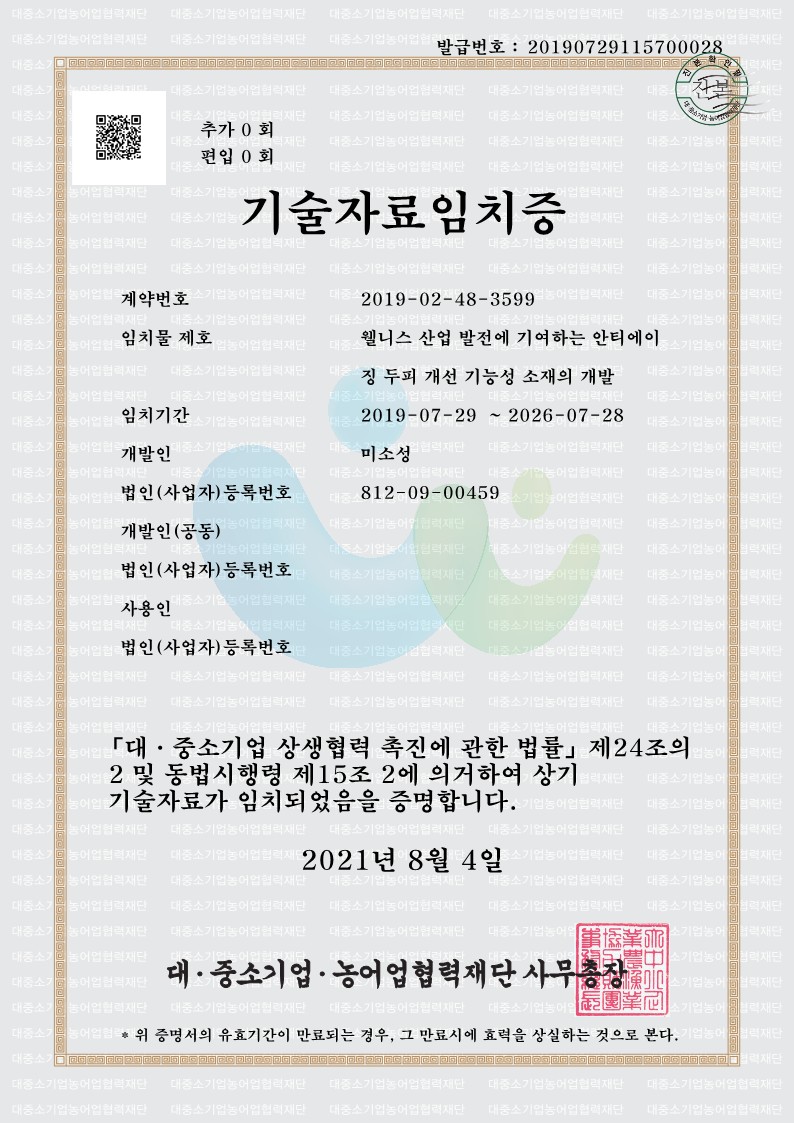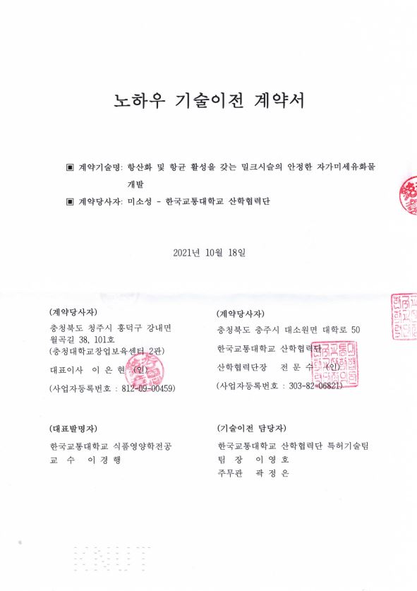 노하우 기술이전 계약서_항산화 및 항균 활성을 갖는 밀크시슬의 안정한 자가미세유화물 개발
