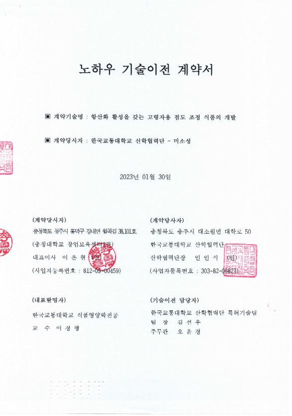 노하우 기술이전 계약서_항산화 활성을 갖는 고령자용 점도 조정 식품의 개발